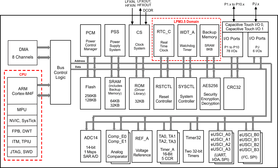 Overall, the MSP432P401x is an ideal combination of the TI MSP430™ low-power DNA, advance mixed-signal features, and the processing capabilities of the ARM 32-bit Cortex-M4 RISC engine. The devices ship with bundled driver libraries and are compatible with standardized components of the ARM ecosystem.